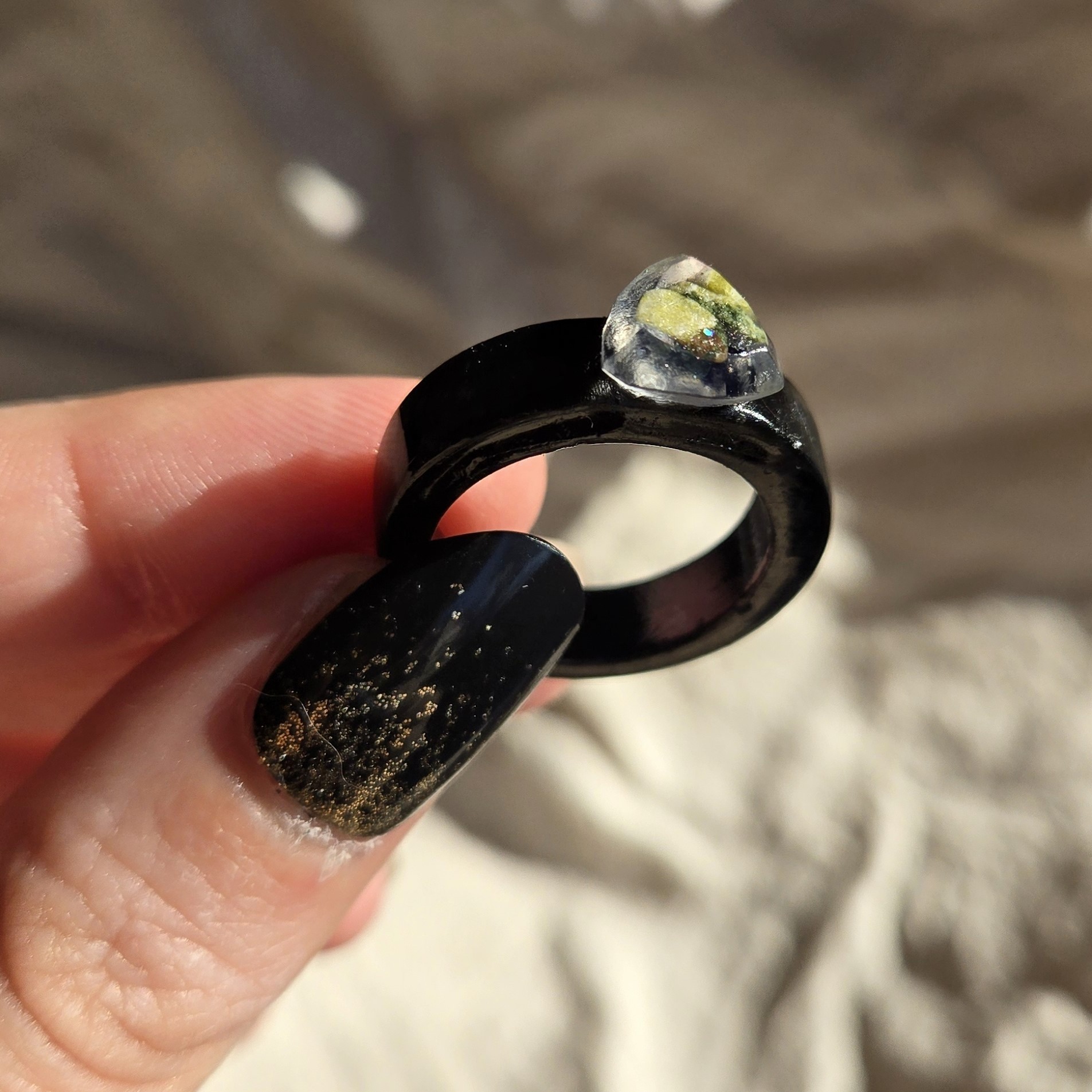 Anillo de orgón. Confeccionado con orgón: resina, metal aluminio y cristales.