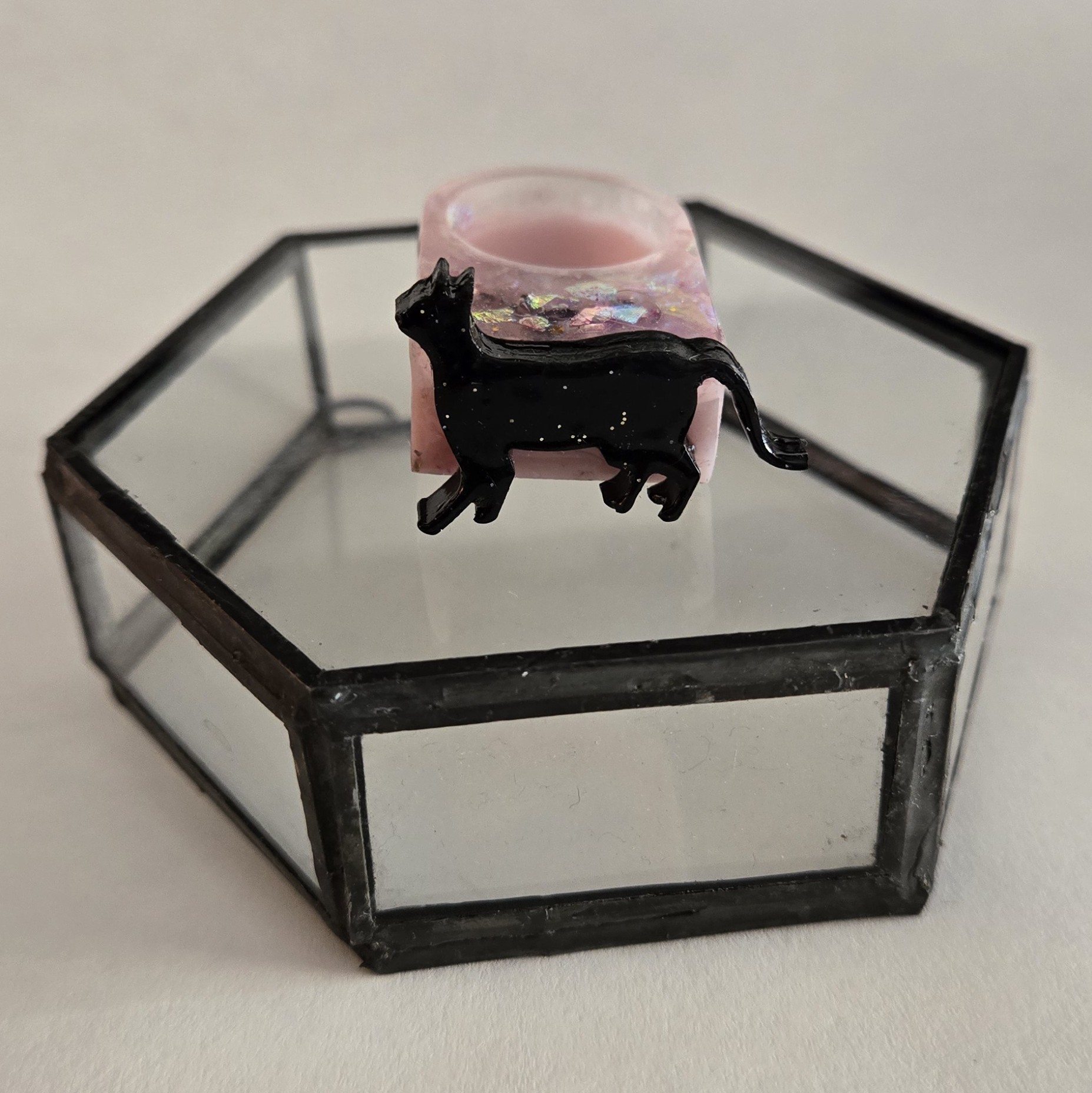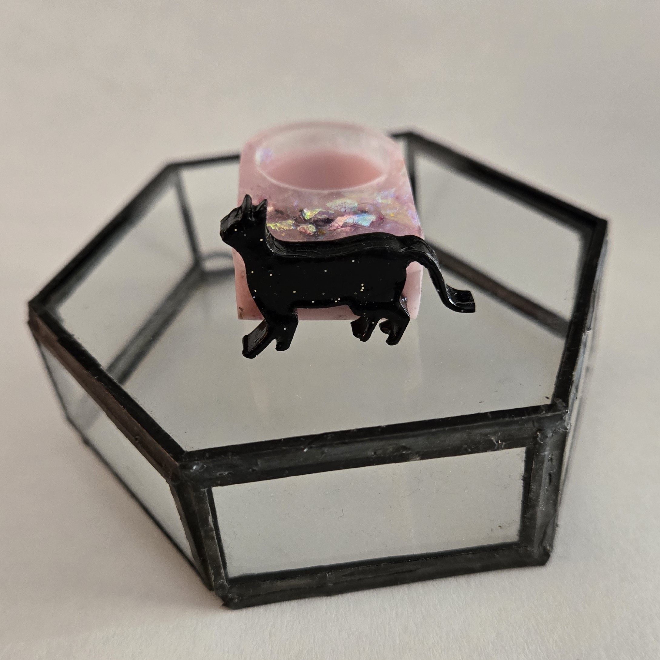Anillo de orgón. Confeccionado con orgón: resina, metal aluminio y cristales.ç