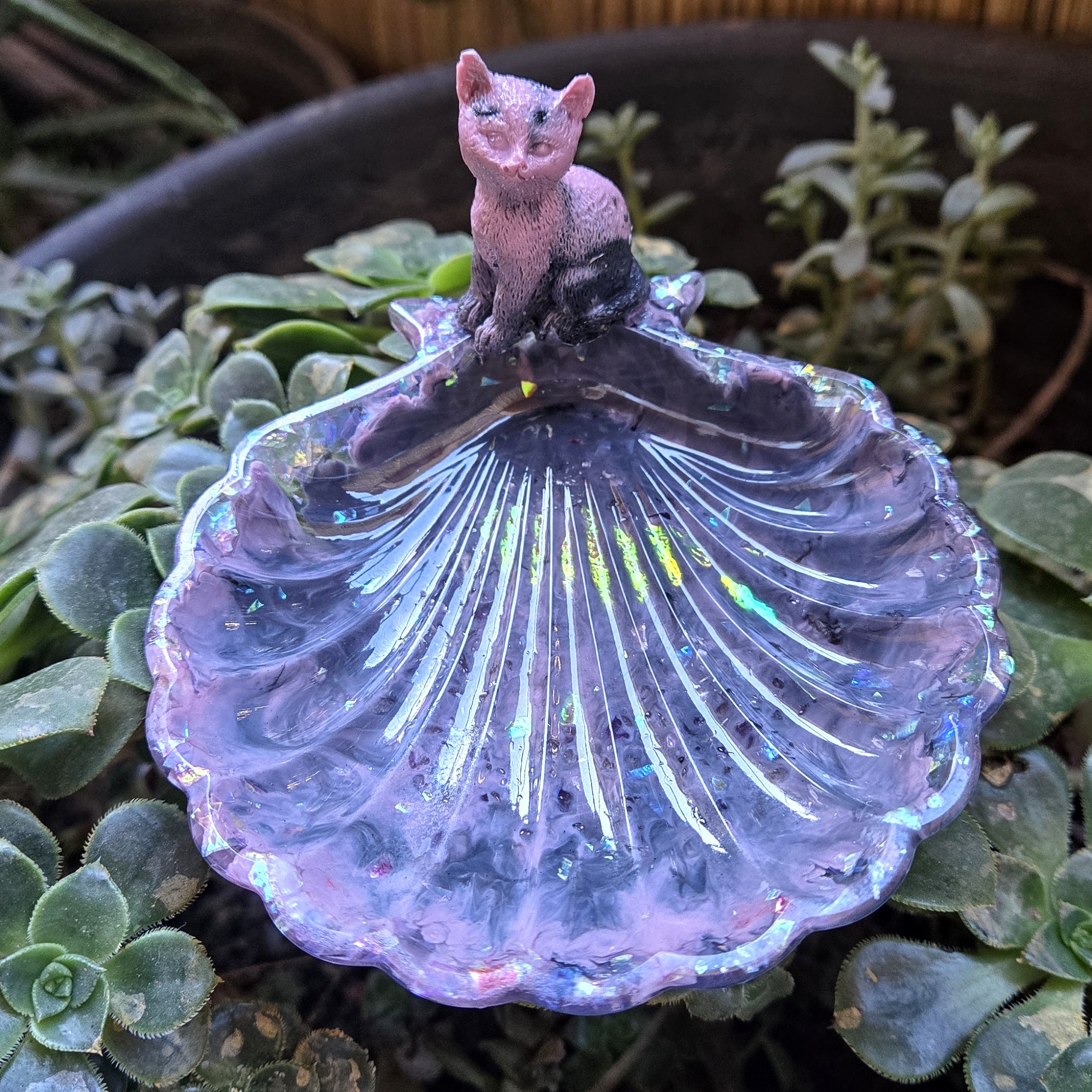 Confeccionado con orgón: resina, cristales y metal acero.