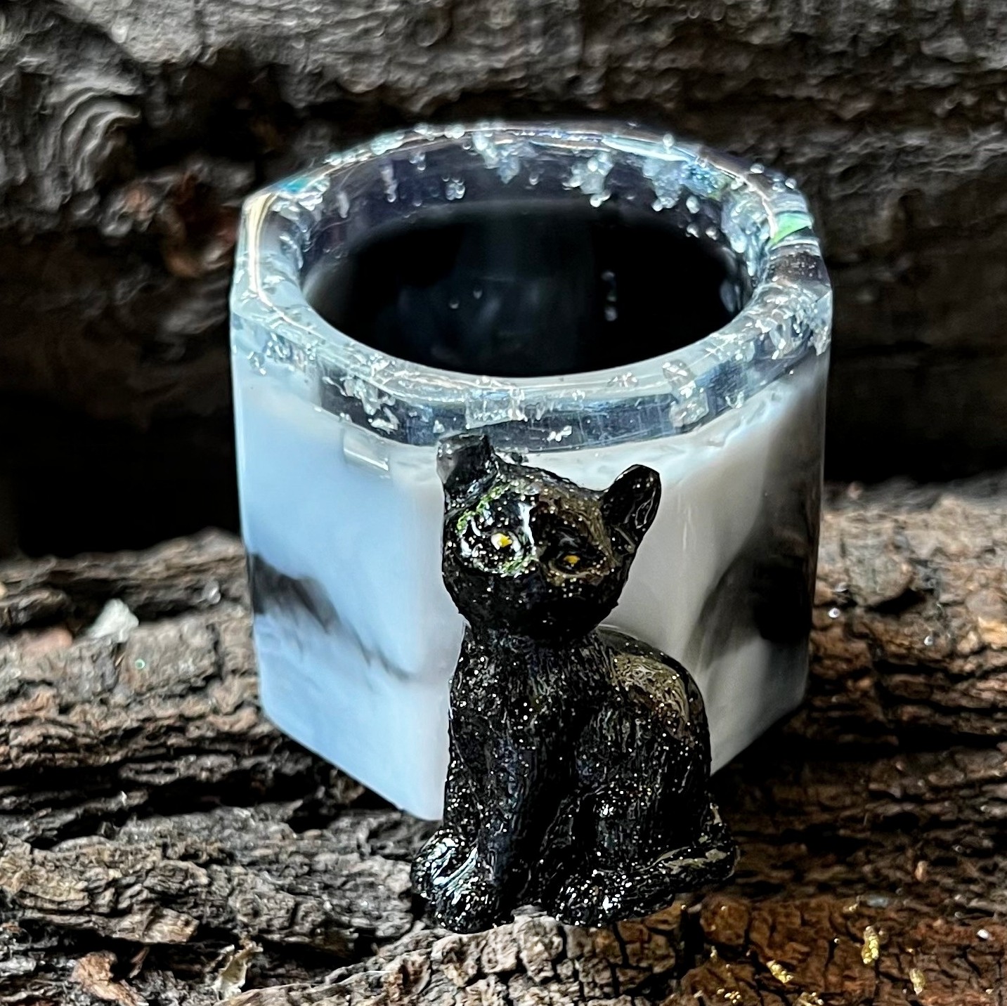 Cargador confeccionado con orgón: resina, metal aluminio y cristales.