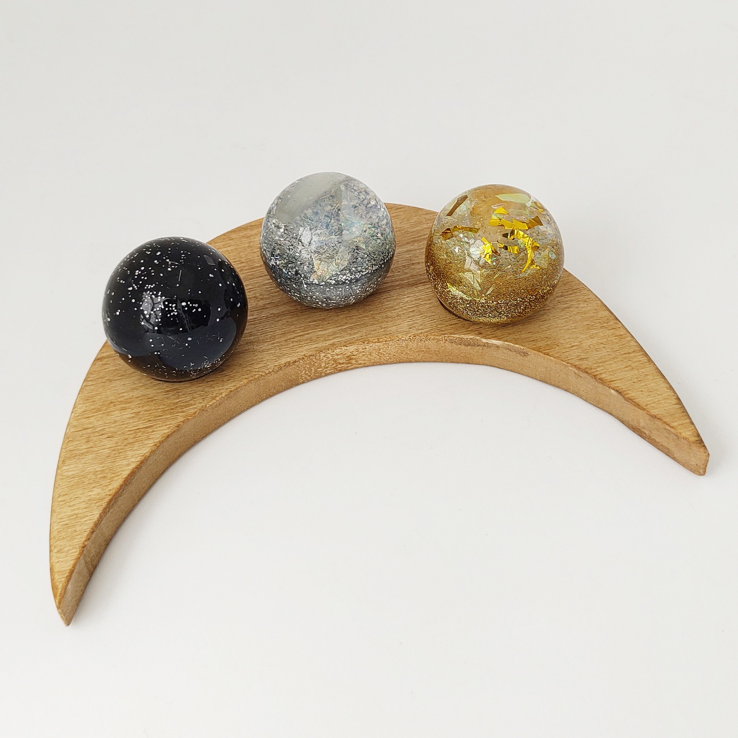 Contiene 3 esferas y plato de madera.