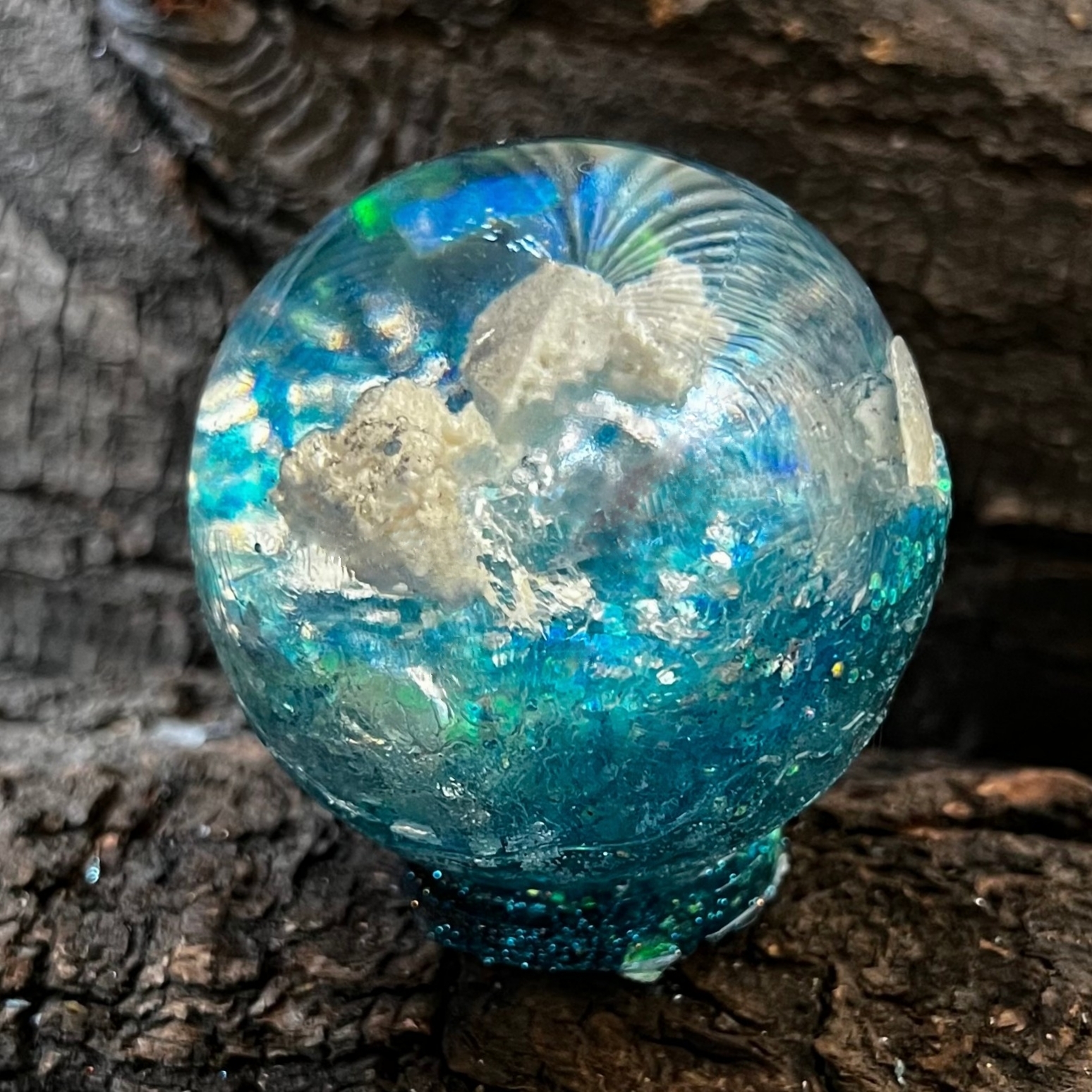 Confeccionado con orgón: resina, metal aluminio y cristales.