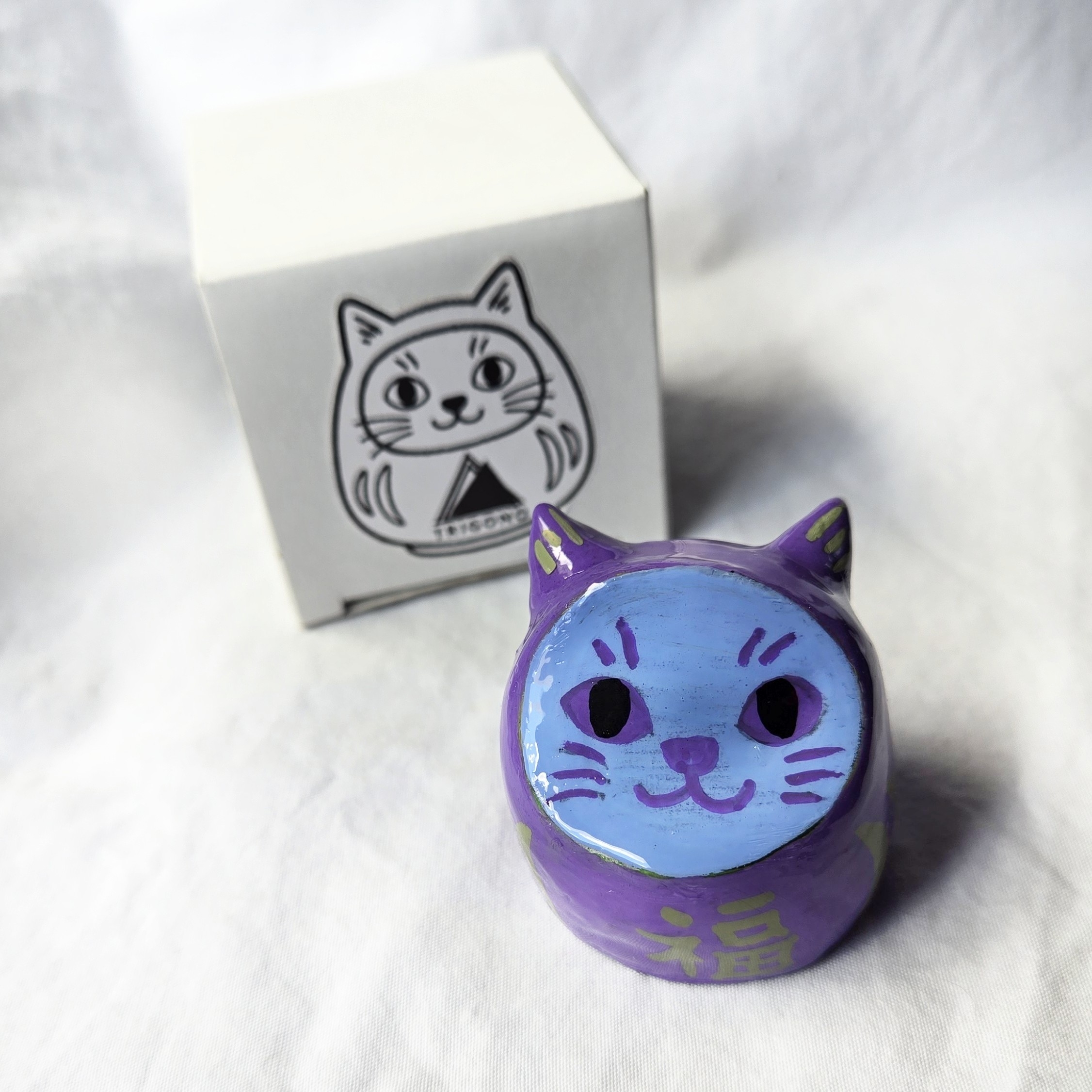Los daruma son amuletos japoneses de buena suerte, perseverancia y logro de metas. Vienen con una tarjeta con los ojos en blanco: cuando alguien se fija una meta o deseo, pinta un ojo; y cuando se cumple, se pinta el otro. En este caso tendrán doble poder porque son daruma gatos, e invocan a los dioses terrestres más amados.