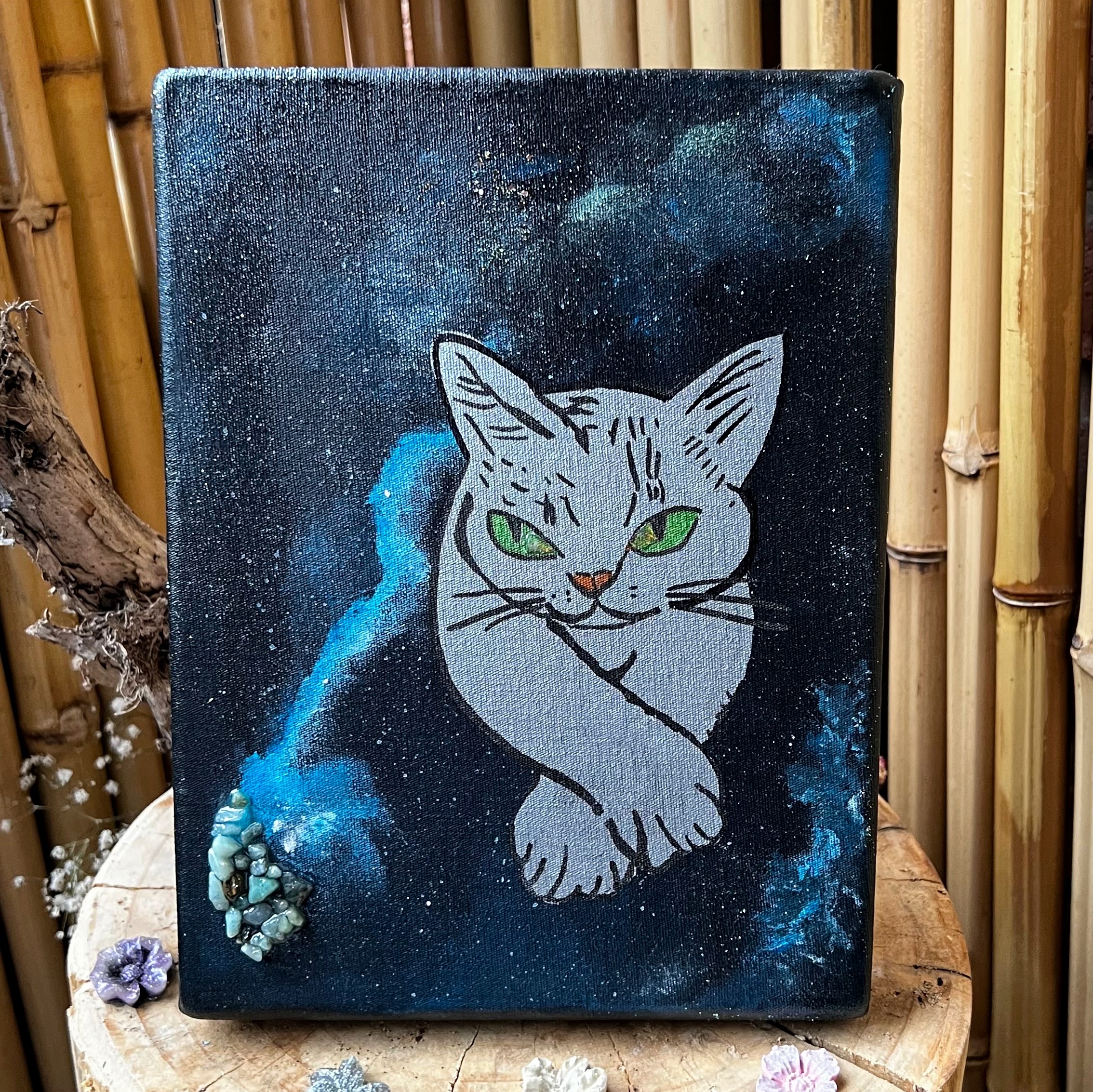 Pintura sintetica para resina, acrílicos, papel holografico y cristales.