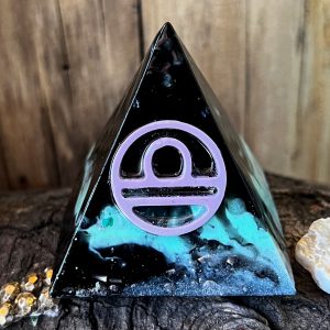 Confeccionado con orgón: resina, metal aluminio y cristales.