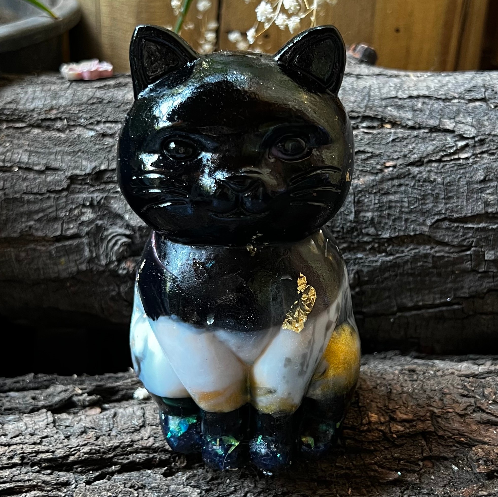 Con incrustación de flores naturales.